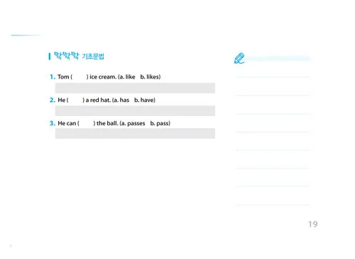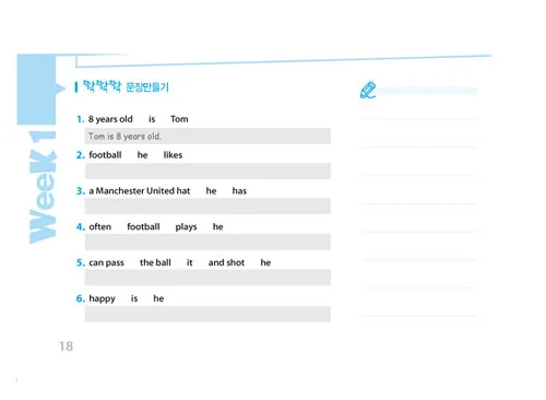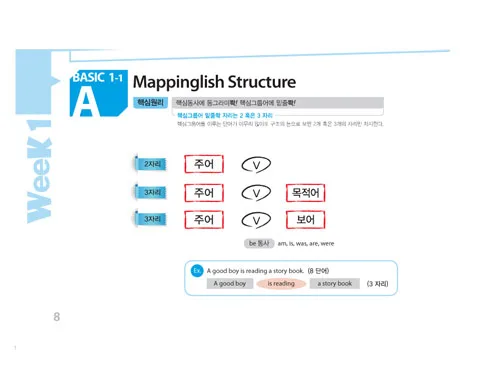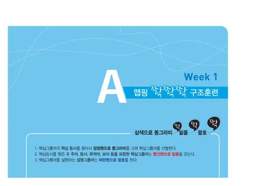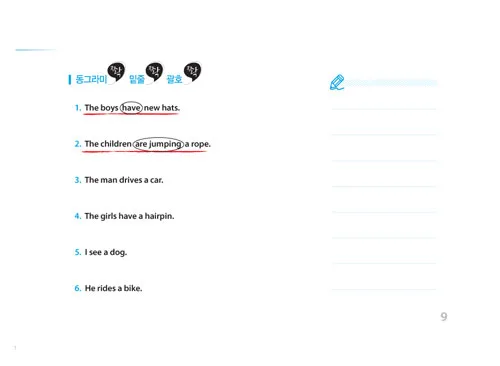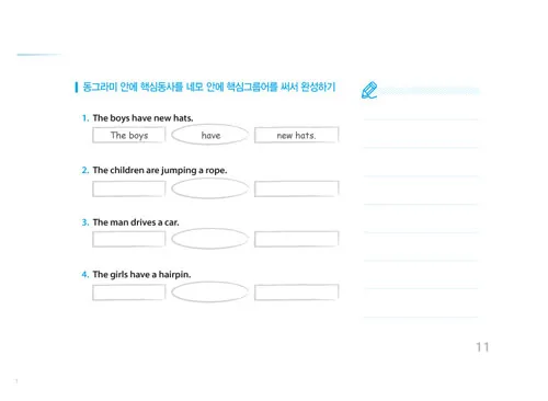주어와 목적어에 밑줄을 긋고, 동사를 찾아 동그라미 치면서 위치에 따라 단어가 해석되는 기초 원리를 배움.