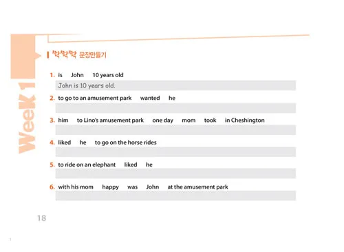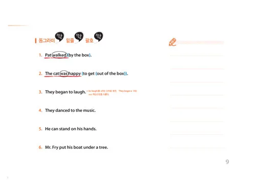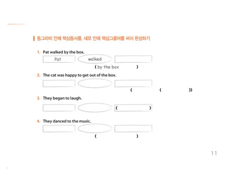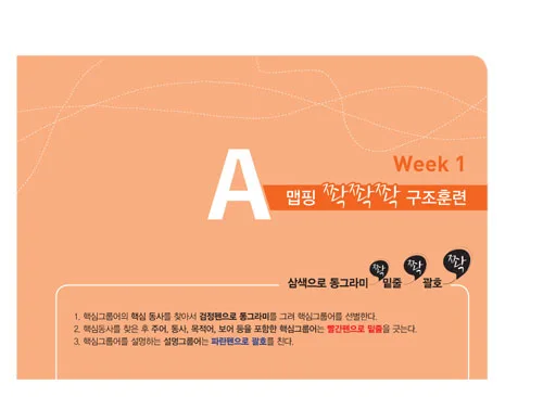 주어와 목적어에 밑줄, 동사를 찾아 동그라미 치고, 준단어 to+v는 괄호를 치면서 준단어가 위치에 따라 해석되는 문장확장 원리를 배움